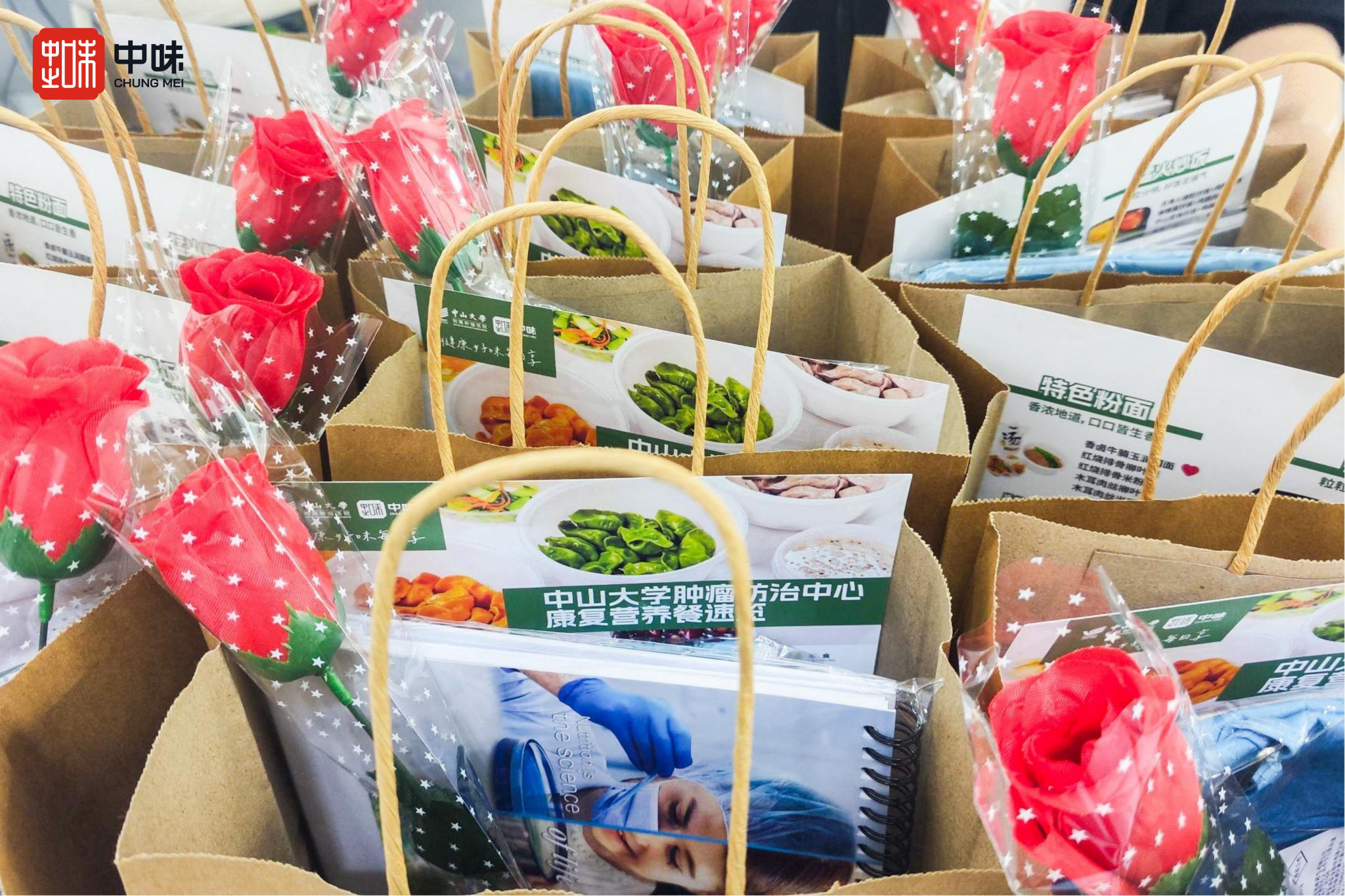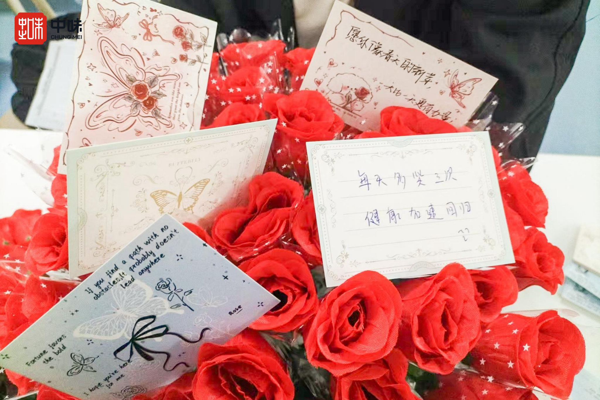 中山大学肿瘤防治中心和中山大学孙逸仙纪念医院里,333体育团队发起“让花开遍院区计划”——一枝玫瑰附一张团队伙伴手写节日卡片,跟着送餐员的脚步,将芬芳播撒到院区里各个科室、病房,为始终心怀希望、抗击病魔的女性职工、病友们送上一声温度满满的鼓励和一份长久陪伴的承诺。?